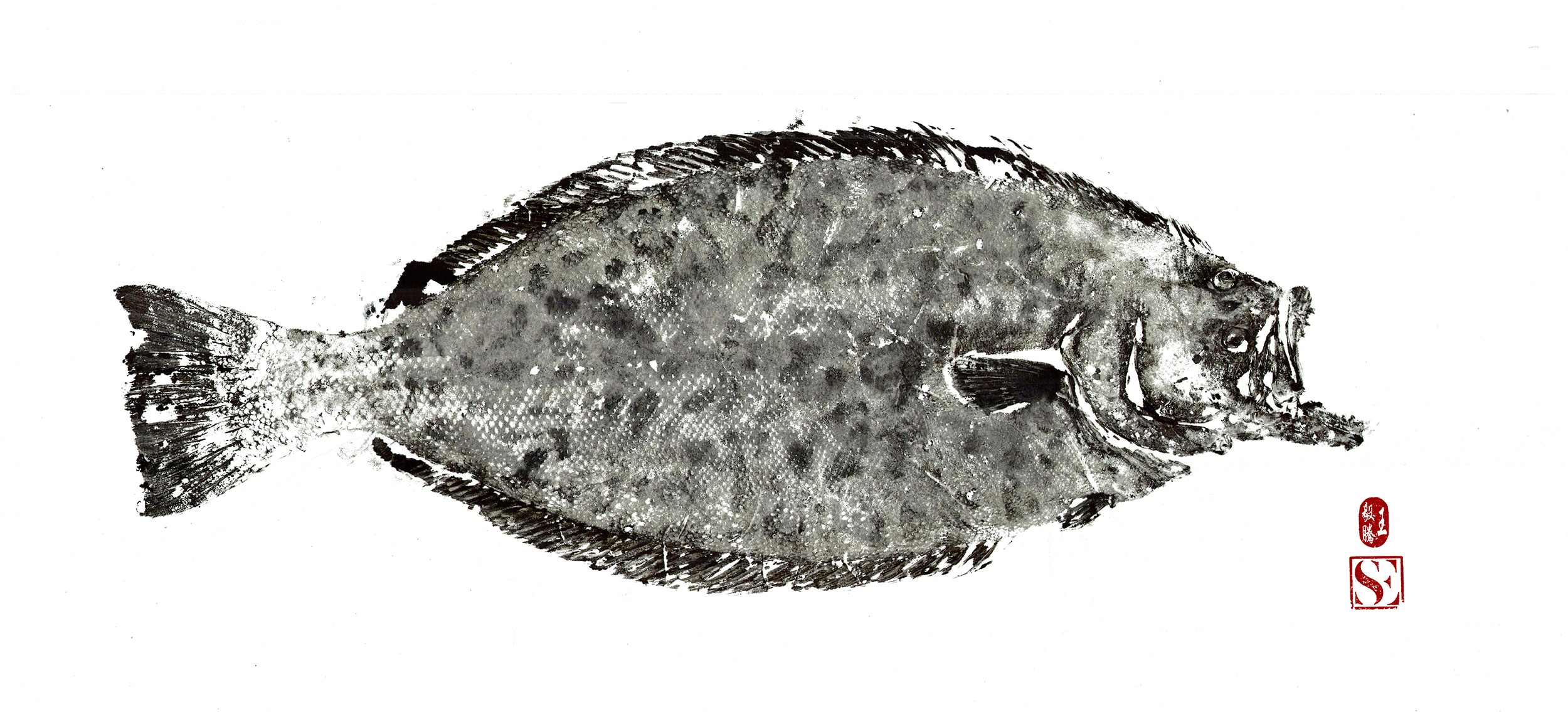 California Halibut Gyutaku Print